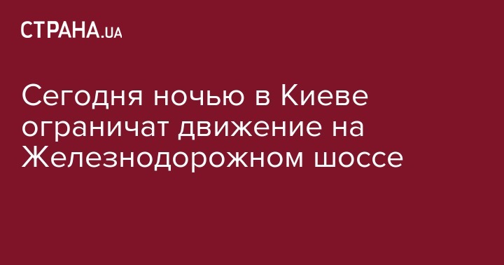Киевская городская государственная администрация приняла решение ограничивать движение транспорта с 7 по 12 сентября каждую ночь на Железнодорожном шоссе. Об этом говорится в сообщении КГГА.