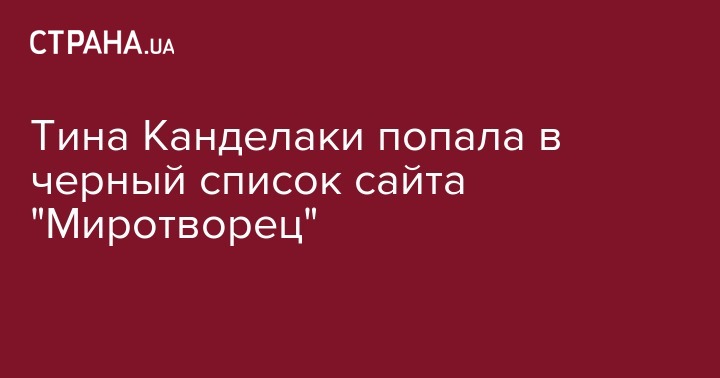 Российская телеведущая и продюсер Тина Канделаки в четверг, 7 сентября, внесена в рубрику "Чистилище" сайта "Миротворец". Информация об этом размещена на сайте.
