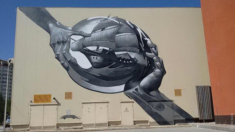 В Одессе здание электроподстанции "новой мэрии" что на Ближних Мельницах украсили огромным муралом (от испанского "фреска" - Ред). Над ним работало сразу несколько художников. Об этом сообщает "Думская".