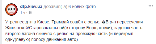 В Киеве возле центрального железнодорожного вокзала на пересечении улиц Жилянская и Старовокзальная в сторону Борщаговки с рельсов сошел трамвай. Об этом в Facebook сообщает dtp.kiev.ua.