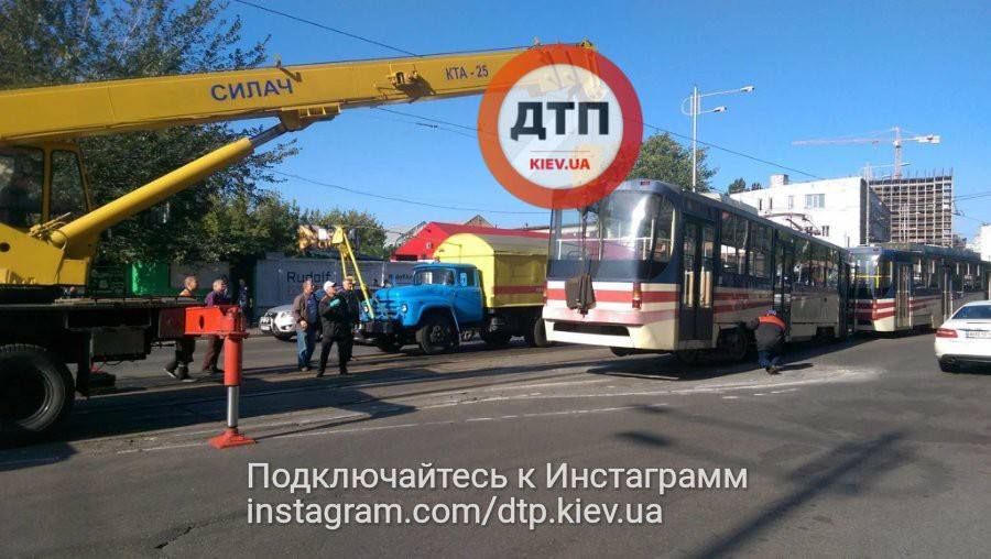 Заднюю часть второго вагона выбросило с рельсов на проезжую часть, из-за чего оказалась перекрыта левая полоса движения авто.