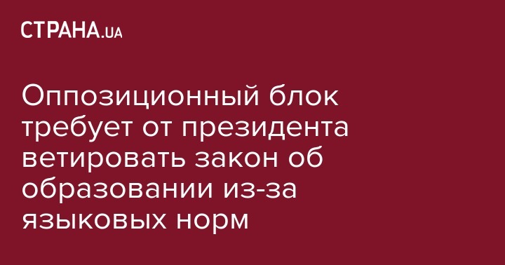 Оппозиционный блок требует от президента ветировать закон об образовании из-за языковых норм
