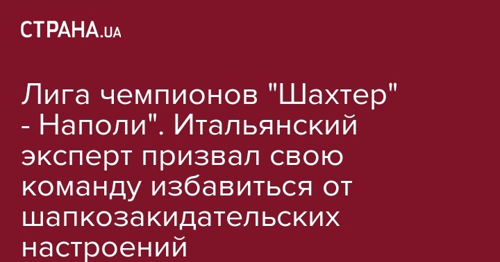 - Я с большим уважением отношусь к "Шахтеру", но считаю, что у них немного шансов против "Наполи". Неаполитанцы слишком сильны. Однако в футболе все возможно, и "Наполи" нужно избежать риска недооценки украинской команды, которая имеем большой опыт выступления в еврокубках.