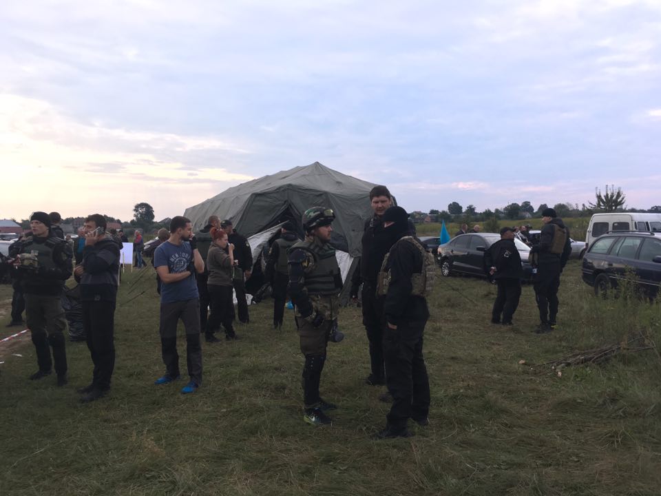 В лагере выделяются ветераны батальона "Донбасс" Семена Семенченко. Они стоят в полной экипировке.
