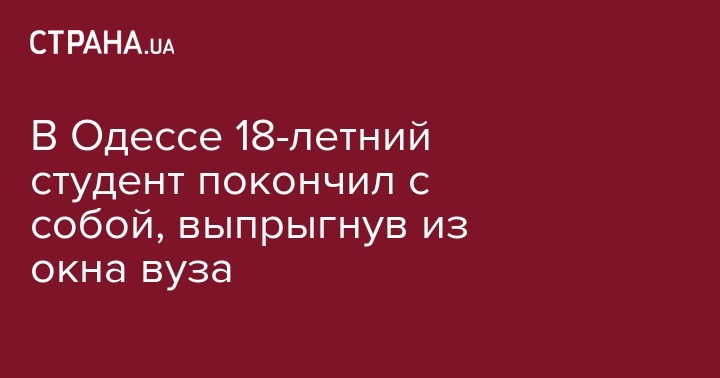 Сегодня, 11 сентября, полиция Одессы начала расследование по факту гибели 18-летнего студента при падении с девятого этажа вуза. Об этом сообщает "УНИАН" со ссылкой на пресс-службу полиции области.
