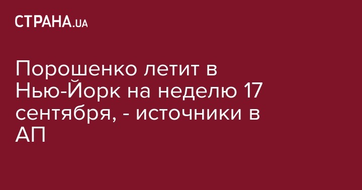 Президент Украины Петр Порошенко едет в Нью-Йорк (США) 17 сентября для выступления на Генеральной ассамблее ООН 20 сентября по вопросу размещения миротворческой миссии в Донбассе. Об этом "Стране" сообщили источники в Администрации президента.