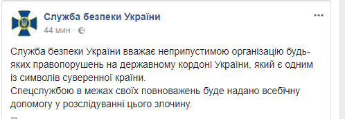 СБУ считает недопустимым организацию любых правонарушений на государственной границе Украины, которая является одним из символов суверенного государства.