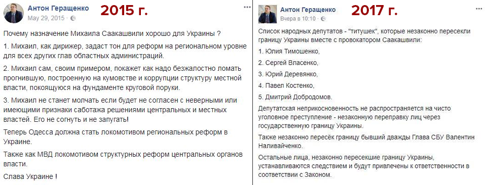 Советник главы МВД и нардеп Антон Геращенко за последние дни написал ряд Facebook-постов с критикой Михаила Саакашвили и его соратников, которые 10 сентября прорвались в Украину, сметая пограничников на своем пути.