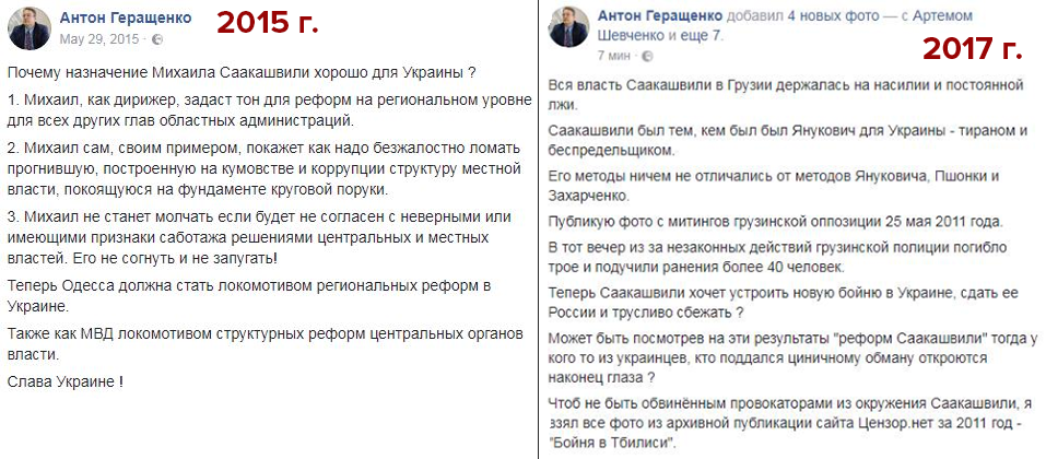 Позже Геращенко исправил этот пост, вставив туда попытку оправдаться за столь резкую смену позиции.