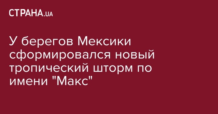 Тропический шторм "Макс" сформировался у южного побережья Мексики. Об этом сообщает Associated Press со ссылкой на Национальный центр по ураганам США.