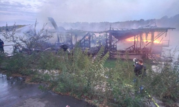 Появились подробности утреннего пожара в дебаркадере на Русановке