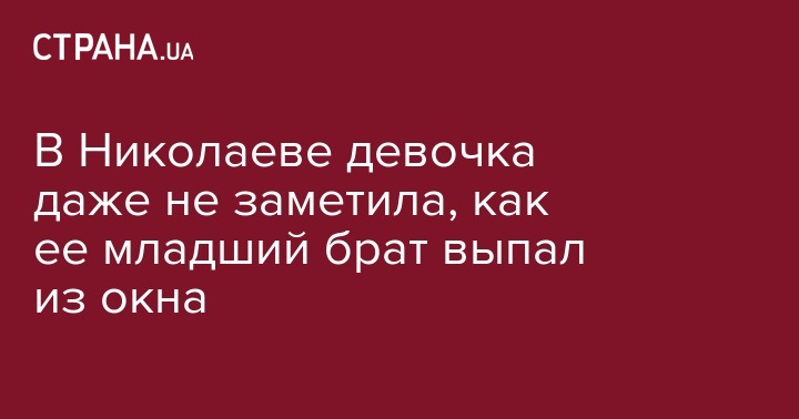 "Благодаря профессионализму николаевских медиков состояние ребенка, выпавшего из окна, стабилизировано. Но оно остается тяжелым. Ребенок уже в сознании", - заявил спикер управления здравоохранения Николаевской облгосадминистрации Юрий Багрянцев.