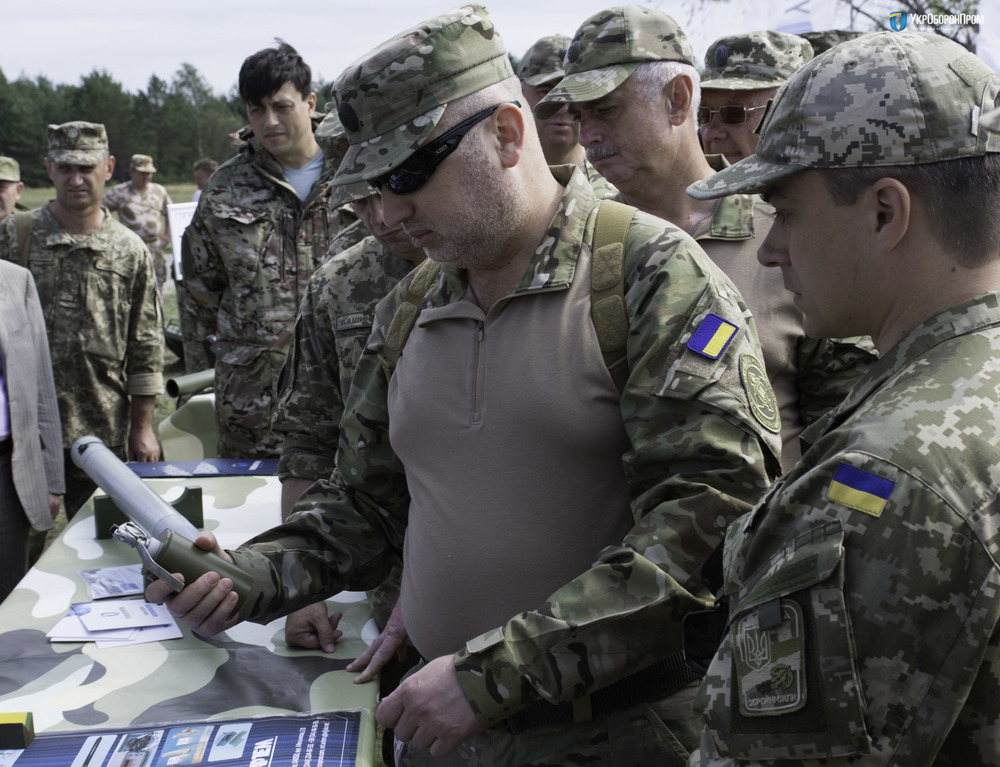 "Разведывательно-ударный комплекс "Сокол", который мы сегодня опробовали, состоит из одной разведывательной и трех ударных боевых машин, поэтому он способен находить и точно поражать цели, используя, в зависимости от задач, боеприпасы фугасного, осколочно-фугасного и термобарического действия", - сказал Турчинов.