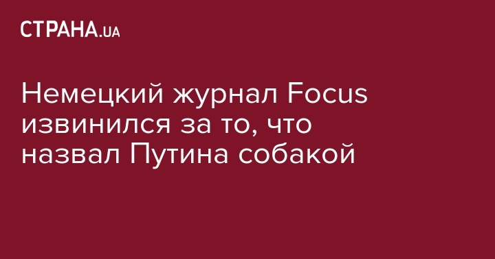 Немецкий журнал Focus извинился за то, что назвал Путина собакой