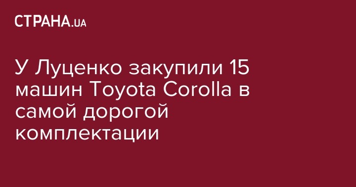 "Фирма поставит ГПУ 15 автомобилей Toyota Corolla в комплектации Multidrive S (вариатор) Stile по 619 тыс. грн каждая. Автомобиль получит камеру заднего вида со статической проекцией, двухзонный климат-контроль, аудиосистему Toyota Touch 2 с цветным сенсорным дисплеем 7" и шестью динамиками, фронтальные и боковые подушки безопасности водителя и переднего пассажира", - говорится в сообщении.