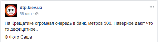 Издание пишет, что очередь тянется метров на 300. "Наверное дают что то дефицитное", - предполагает паблик подразумевая, что очередь стоит в один из банков в здании Крещатик 7/11.
