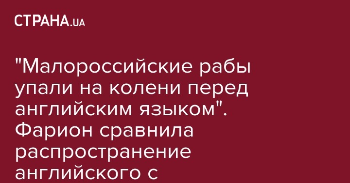 Фарион уверена, что "малороссийские рабы упали на колени перед английским языком, и англомания захватила страну как алкоголизм или политическая проституция".