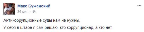 Блогер Макс Бужанский: "Антикоррупционные суды нам не нужны. У себя в штабе я сам решаю, кто коррупционер, а кто нет".