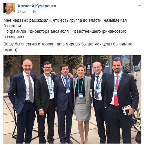 Экс-министр ЖКХ Алексей Кучеренко: Мне недавно рассказали, что есть группа во власти, называемая "ложкари". По фамилии "директора ансамбля", известнейшего финансового разводилы. Вашу бы энергию и теории, да в мирных бы целях - цены бы вам не было!"