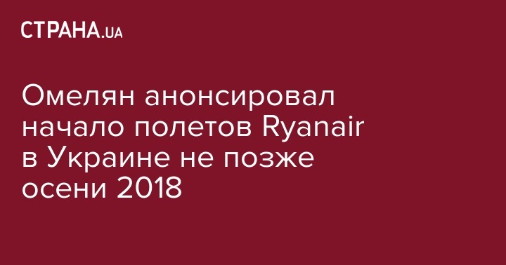 Министр инфраструктуры Владимир Омелян обещает, что крупнейший лоукост Ryanair должен начать работать в Украине не позже осени следующего года. Об этом Омелян заявил в интервью "Лиге".