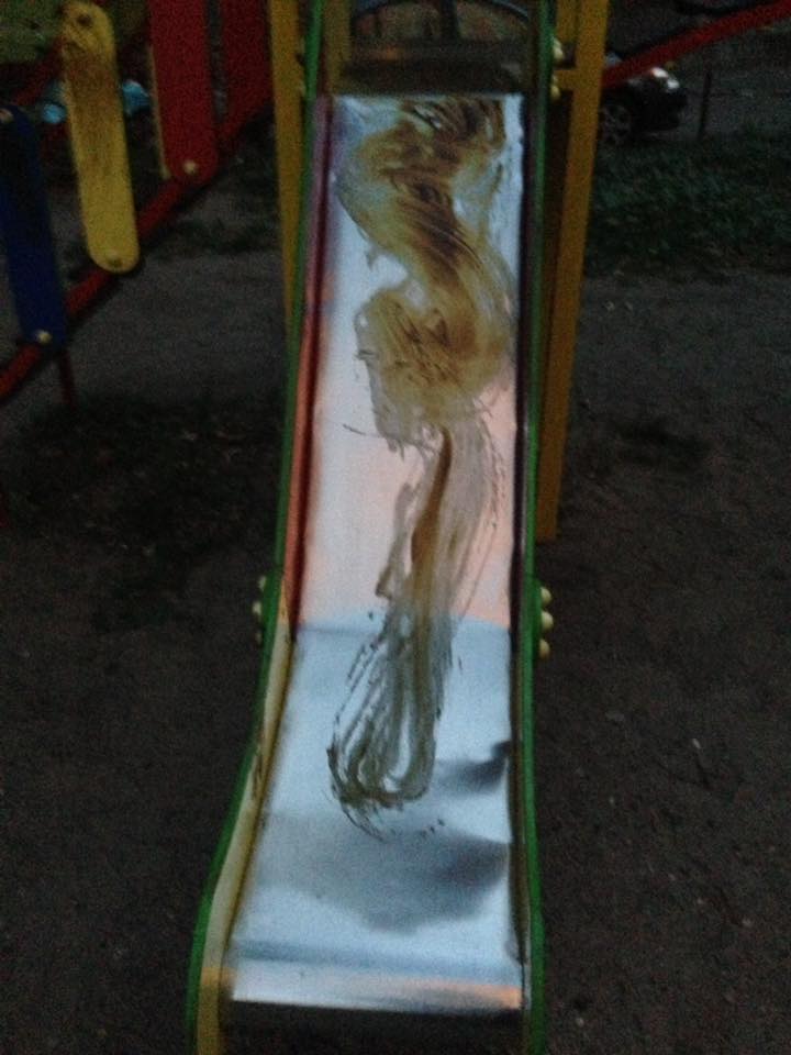 Он говорит, что это не на шутку возмутило киевлян. На детской игровой площадке солидолом измазали качели, горку, лесенку и т.д.