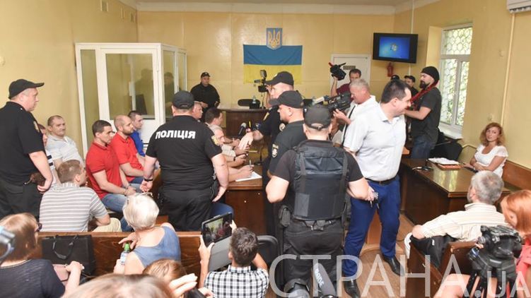 Они не могли покинуть здание суда, так как снаружи их ожидали несколько десятков проукраинских радикалов, несогласных с оправдательным решением суда.