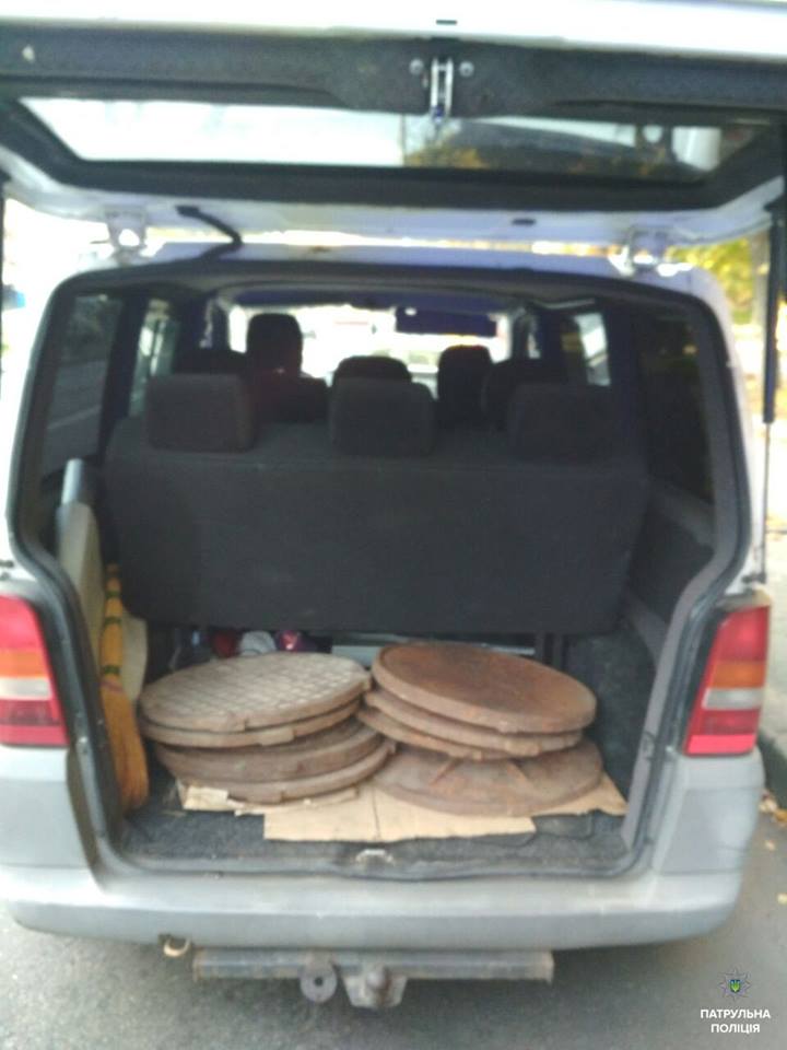 Автомобиль с 14 вероятно ворованными крышками канализационных люков в Подольском районе остановили патрульные Киева. Об этом сообщается на страницe патрульной полиции в Facebook.