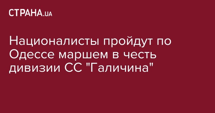 Всеукраинское объединение "Свобода" и организация "Сокол" намерены провести в Одессе "Марш славы добровольцев" по случаю 73-летия со дня создания дивизии "Галичина". Об этом говорится на странице "Сокола" в Facebook.