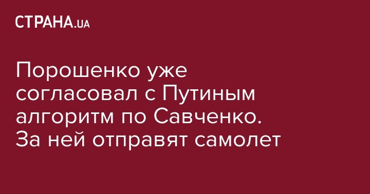 Порошенко уже согласовал с Путиным алгоритм по Савченко. За ней отправят самолет