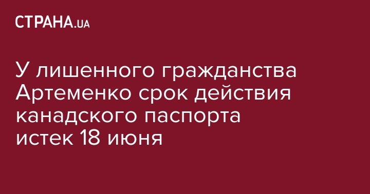 У лишенного гражданства Артеменко срок действия канадского паспорта истек 18 июня