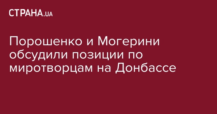 "Президент Украины проинформировал высокого представителя о развитии ситуации на Донбассе и состоянии имплементации Минских договоренностей и об инициативе Украины по развертыванию в оккупированном Донбассе миротворцев ООН, включая неконтролируемый участок украинско-российской государственной границы", -пишет пресс-служба.