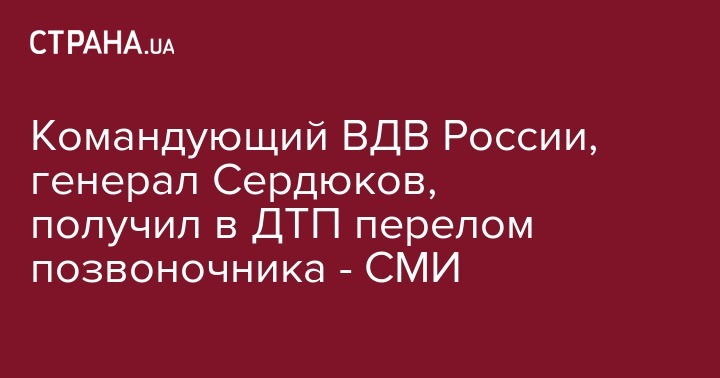 Командующий Воздушно-десантными войсками России генерал-полковник Андрей Сердюков, руководивший операцией по аннексии Крыма весной 2014 года, находится в тяжелом состоянии после ДТП, которое произошло еще 15 сентября. Об этом сообщает "Интерфакс" со ссылкой на источник в Минобороны России.