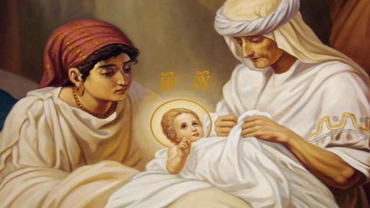 По преданию, у благочестивой семейной пары из Иерусалима — Иоакима и Анны — долгое время не было детей. Когда Иоаким пришёл в храм принести Богу жертву, первосвященник ему отказал, так как тот был бездетным. Тогда Иоаким в скорби удалился в пустыню для молитвы, а его жена осталась дома в одиночестве и тоже молилась. В это время им обоим было видение ангела, возвестившего: "Анна! Господь услышал молитвы твои, и ты родишь Дочь благословенную. Ради Нее благословятся все роды земные. Чрез Нее дастся спасение всему миру, и наречется Она Марией".