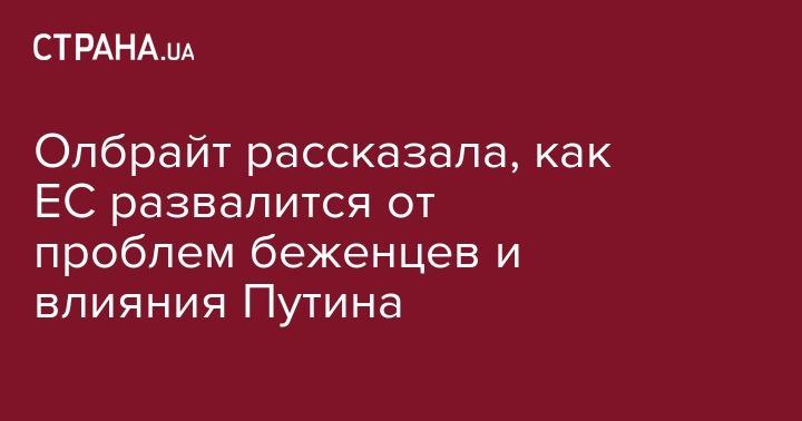 "В Европе забыли, как это - быть беженцами, там забыли 1956 год и Венгрию. Если так продолжится, ЕС из-за этого развалится", - такое мнение высказала бывший госсекретарь США Мадлен Олбрайт, передает Die Presse.