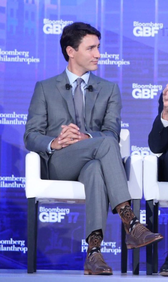 Канадский премьер-министр Джастин Трюдо, известный своей любовью к оригинальным носкам, взорвал сеть очередной парой - с изображением Чубакки. Об этом написал Уильям Шэтнер в Twitter.