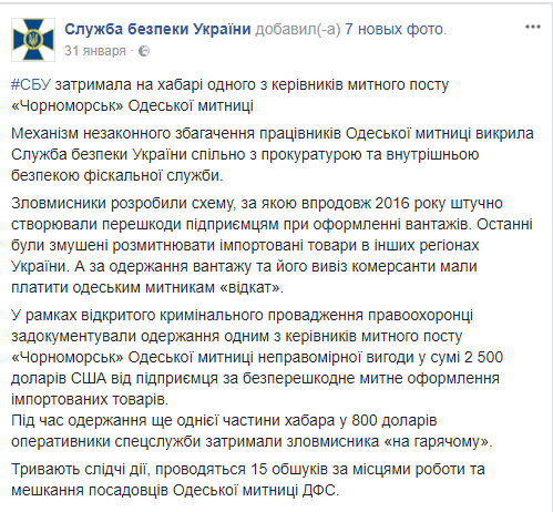 "По информации спецслужбы, депутат обложил "данью" большинство торговых точек ориентированных на обслуживание приезжих. Оперативники СБУ задержали чиновника и его помощника возле центрального стадиона города во время получения всей суммы взятки. Открыто уголовное производство по ч. 3 ст. 368 Уголовного кодекса Украины. Продолжаются неотложные следственно-оперативные действия", - говорят в СБУ.
