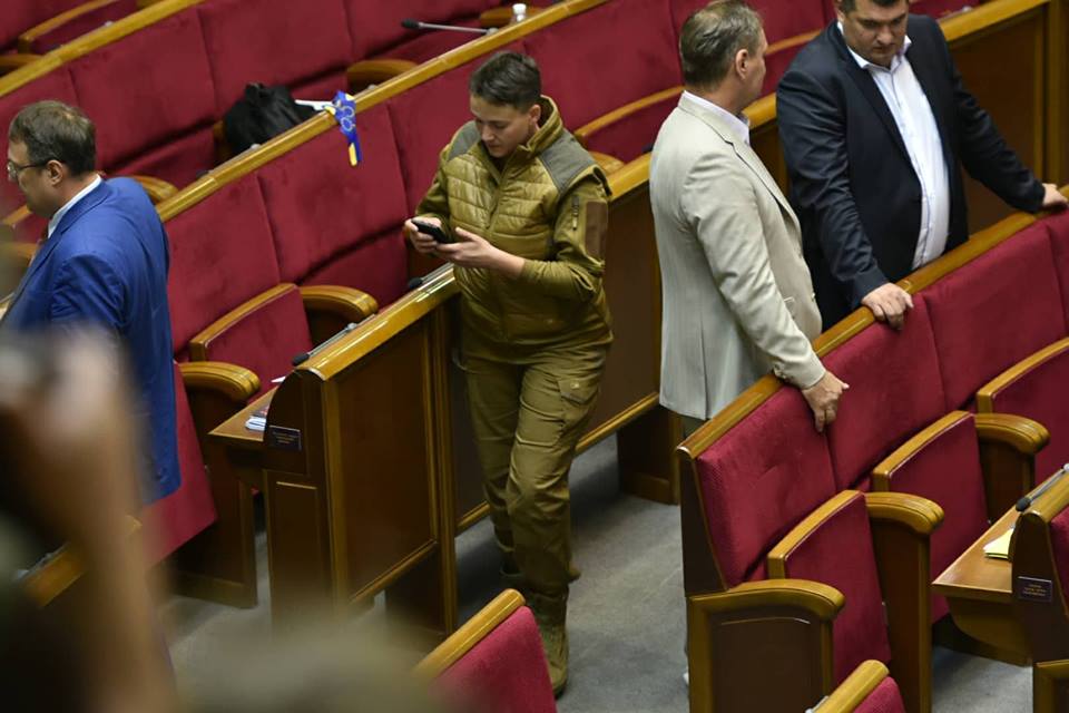 Внефрацкционный народный депутат Надежда Савченко пришла в Раду в милитари костюме.