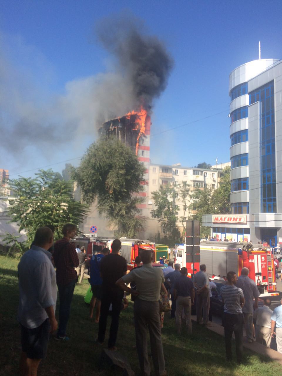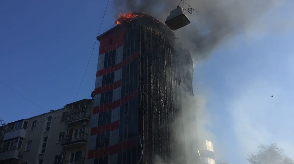 В центре Ростова-на-Дону полыхает новая десятиэтажная гостиница