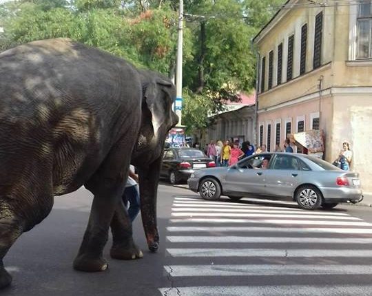 В Одессе слон гулял по проезжей части и мешал автомобилям. Фото