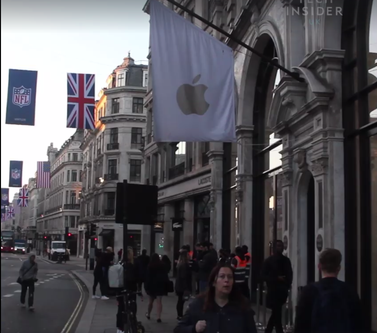 Очередей не наблюдается даже у флагманского магазина Apple Store в Лондоне.