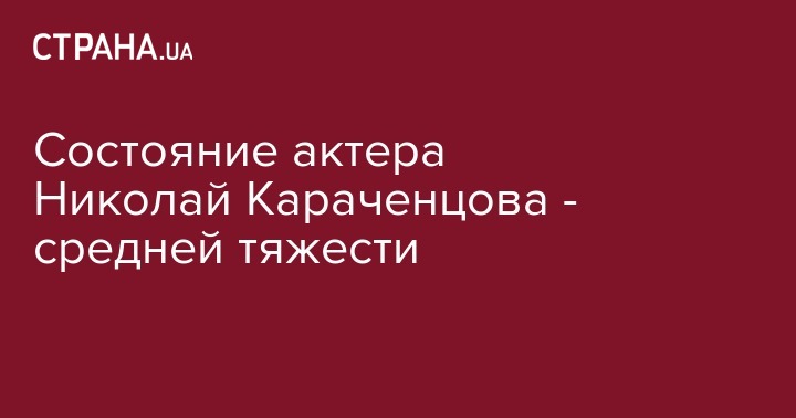 Состояние здоровья актера Николая Караченцова, который был госпитализирован неделю назад, оценивается как средней степени тяжести. Об этом сообщает РИА "Новости" со ссылкой на пресс-службу НИИ им. Склифосовского.