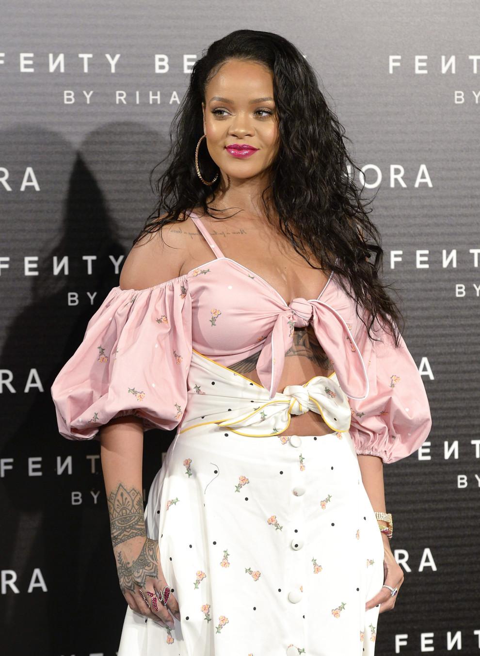 Смену в образе немного располневшая Ри продемонстрировала на презентации своей первой коллекции косметики Fenty Beauty.