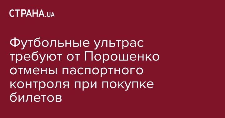 Украинские футбольные ультрас потребовали отмены продажи именных билетов на матчи по паспортам. С соответствующим письмом они обратились к президенту Украины Петру Порошенко.