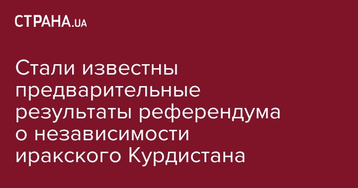 Напомним, что референдум о независимости Иракского Курдистана завершился на час позже, чем планировалось. Голосование проходило в провинциях Эрбиль, Сулеймания, Дахук, входящих в состав курдского автономного региона Ирака, а также в провинции Киркук и местах компактного проживания курдов в Найнаве и Дияле.