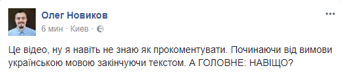 Олег Новиков, журналист: "Это видео, ну я даже не знаю как прокомментировать. Начиная от произношения на украинском языке заканчивая текстом. А ГЛАВНОЕ: ЗАЧЕМ?"