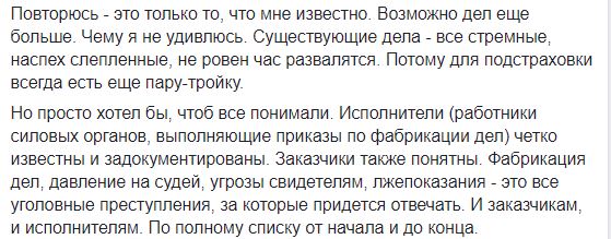"5 дел - это только то, что мне известно, - пишет Игорь Гужва. - Возможно дел еще больше. Чему я не удивлюсь. Существующие дела - все стремные, наспех слепленные, не ровен час развалятся. Потому для подстраховки всегда есть еще пару-тройку".