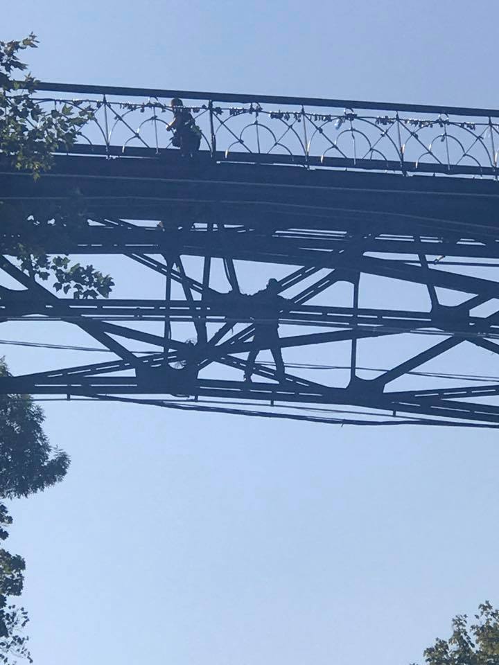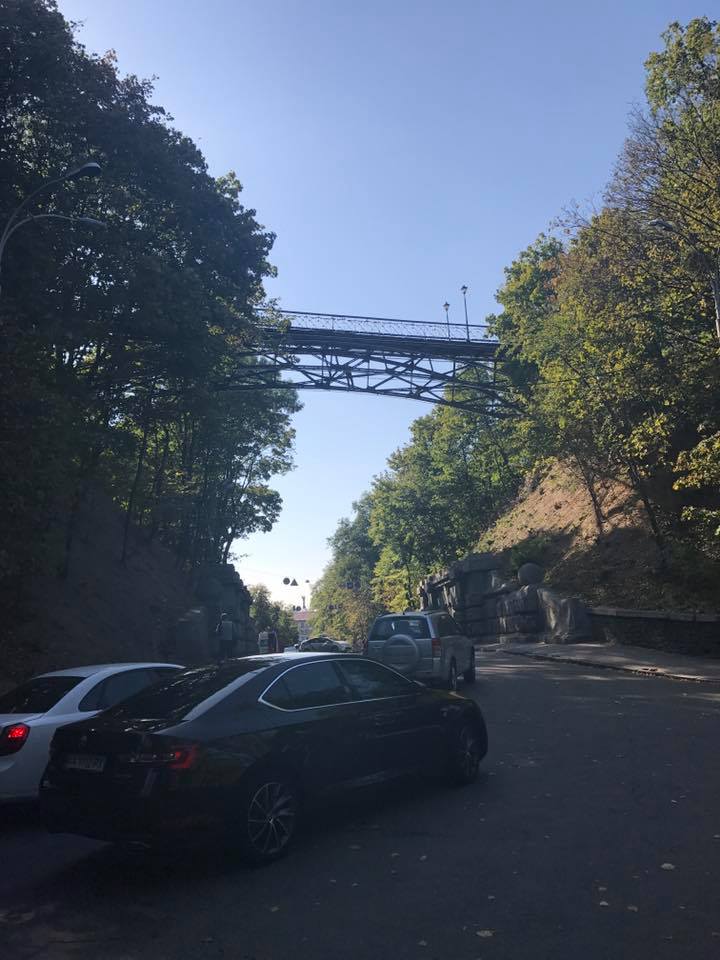 "Кто собирается ехать с днепровской набережной в центр - не едьте. На мосту влюбленных парень собирается прыгать. Все перекрыли. Ждут МЧС. Машины разворачивают. АПДТ: орет про п*даров и прокуратуру. Пьяный. Сигаретку принесли ему", - написала она в Facebook.