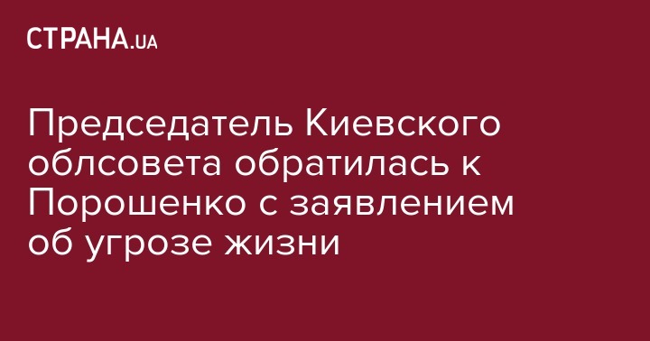 Председатель Киевского областного совета Анна Старикова (избиралась в совет от партии «Батькивщина») обращается к президенту Украины Петру Порошенко по поводу «угрозы жизни». Соответствующее обращение Старикова обнародовала на своей странице в Facebook.