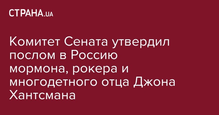 Комитет Сената Конгресса США по иностранным делам во вторник на заседании поддержал кандидатуру 57-летнего Джона Хантсмана на пост посла в Москве, решение было принято подавляющим большинством голосов. Трансляция из зала заседаний велась на сайте комитета.