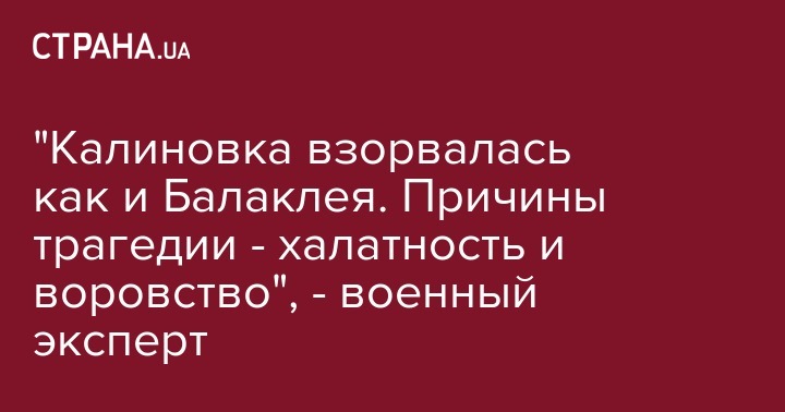 "Калиновка взорвалась как и Балаклея. Причины трагедии - халатность и воровство", - военный эксперт
